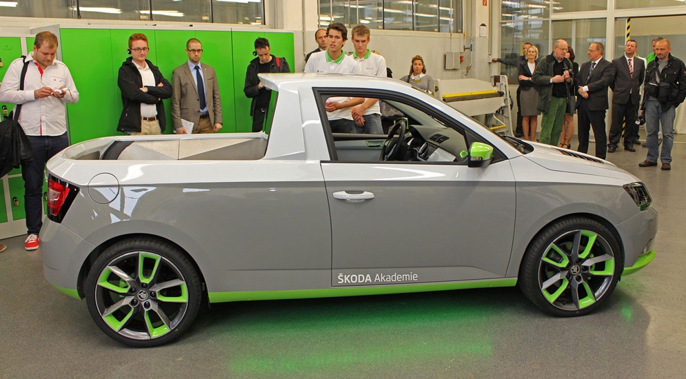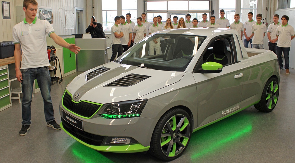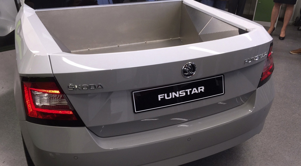 Симпатичный пикап, получивший имя Funstar, создан на базе актуального поколения Fabia. Так как у хэтчбека нет рамы, на которую можно было бы установить грузовой отсек, молодые инженеры сварили кузов из листового металла и интегрировали его между усиленными боковинами корпуса Fabia. Усилить пришлось и то, что раньше было средней стойкой.