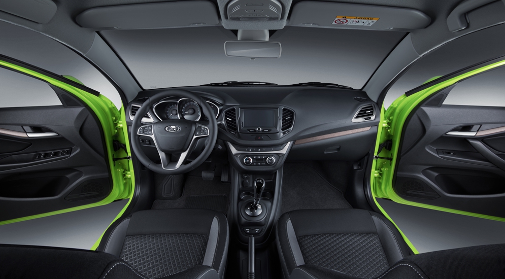Vesta в наиболее богатой версии Luxe предлагается в цвете Lime (за дополнительную плату) и оснащается в том числе противотуманными фонарями, электростеклоподъёмниками задних дверей, обогревом лобового стекла, датчиками дождя и света, подлокотником сиденья водителя с регулировкой по углу наклона, а также 16-дюймовыми литыми колёсными дисками. С пакетом XV Line Веста получит также камеру заднего вида, круиз-контроль, ограничитель скорости, мультимедийную систему с сенсорным семидюймовым дисплеем, навигатор, накладки на педали, спойлер и декоративную насадку выхлопной трубы.