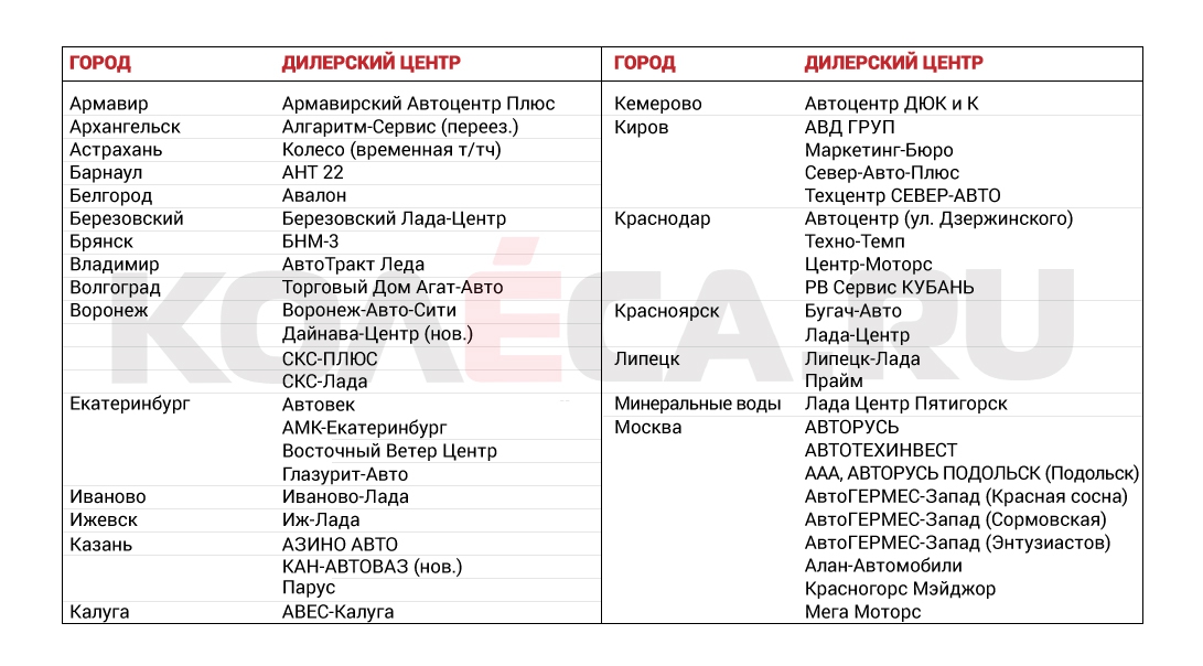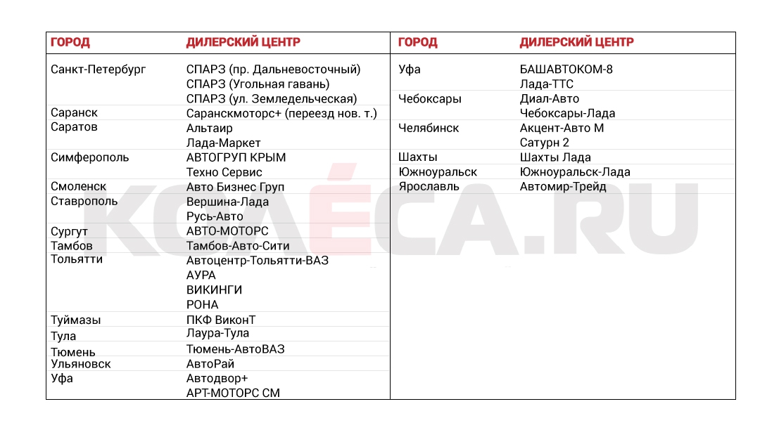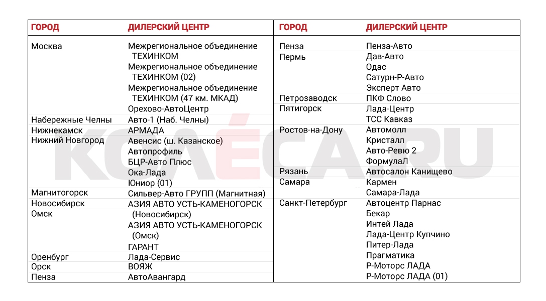 Дилерские центры, в которых начнутся продажи Lada Xray