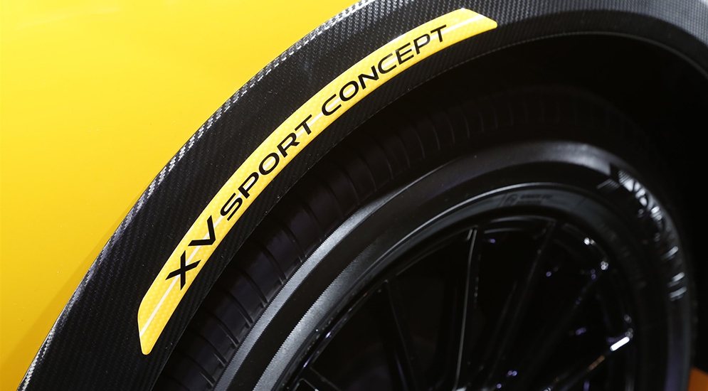 Концепт Subaru XV Sport выкрашен в яркий жёлтый цвет Sunrise, получил глянцевую отделку решётки радатора чёрного цвета, вставки из углепластика в переднем и заднем бампере, чёрную крышу под карбон, диски 17-го диаметра, "обутые" в шины Yokohama, боковые юбки, уменьшенный дорожный просвет и спойлер.