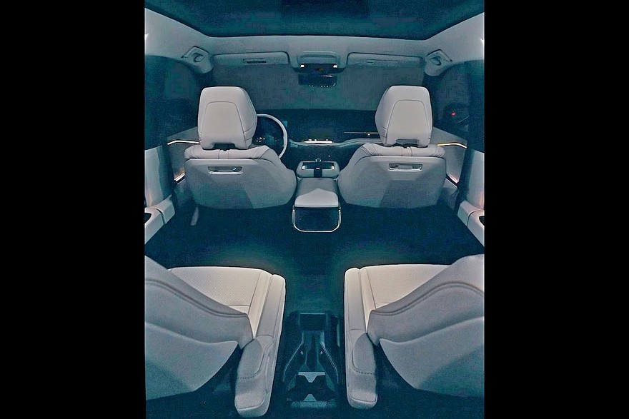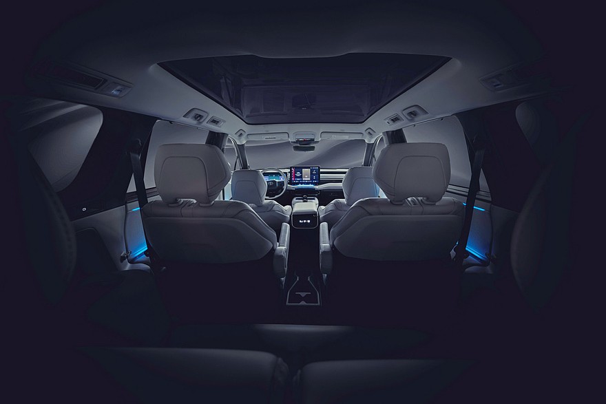 В шестиместном салоне установлены раздельные экраны приборки и мультимедийной системы. Небольшой дисплей встроен и в торец центрального тоннеля. Для пассажиров третьего ряда предусмотрены собственные подстаканники, плюс встроенные в обшивку дверей USB-разъемы. Наконец, паркетнику досталась стеклянная крыша.