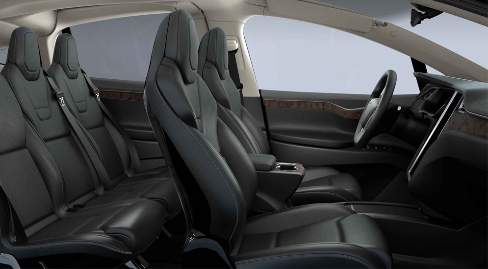 Сиденья всех трёх рядов в салоне Model X раздельные, имеют регулировку наклона спинки, а также сдвигаются вперёд-назад. Поклажу можно разместить в переднем и заднем багажниках, а также отделении для мелочи под сиденьями второго ряда.