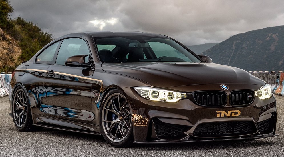 Возвращаясь к M4, первое, что бросается в глаза – цвет. Оттенок Pyrite Brown отлично сочетается с линиями кузова, подчёркивая их агрессию. Сидит этот кузов на дисках BBS FI-R, а дополнен экстерьер карбоновыми спойлерами, юбками и диффузором. Для того, чтобы 430-сильная мощь была максимально эффективной, автомобиль прижат к земле при помощи регулируемой подвески KW Variant 3.