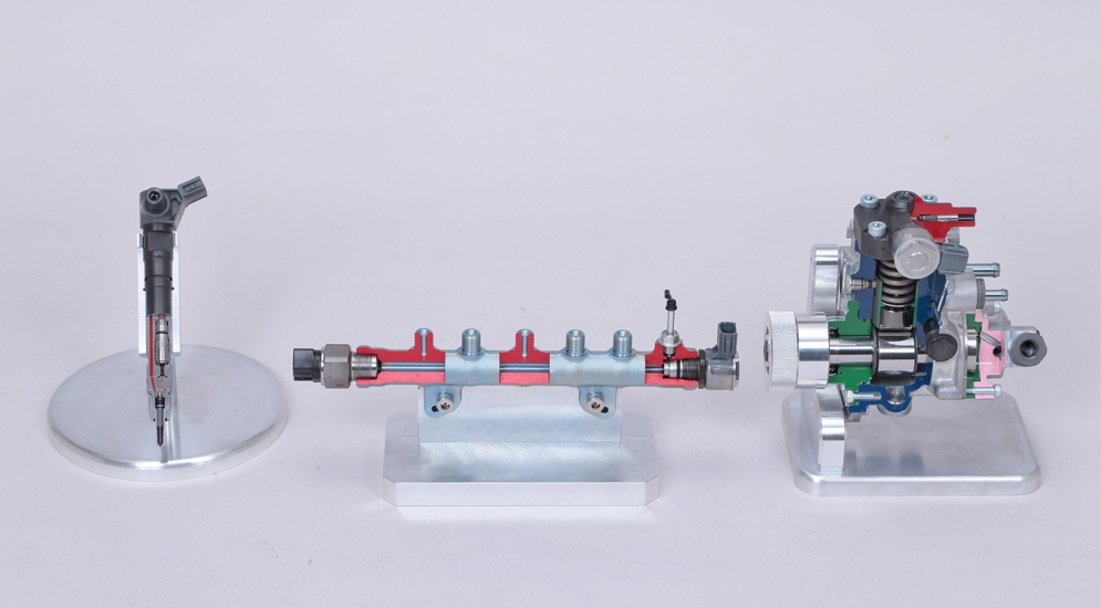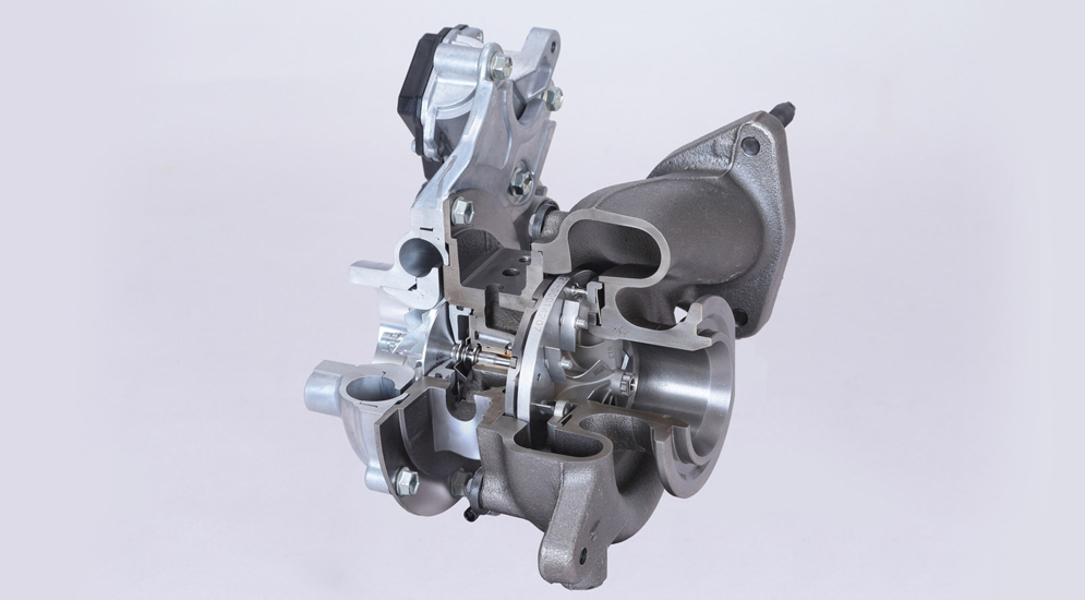 На фото: поршень из кремний-алюминиевого сплава, новая компактная турбина, модернизированная система впрыска Common Rail и новый каталитический нейтрализатор