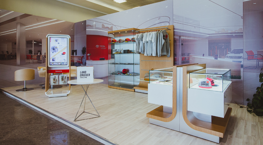 Купить одежду и аксессуары коллекции можно в дилерских центрах японского бренда, также все элементы представлены в онлайн-каталоге. Сейчас первый корнер уже открыт в Москве, в "Toyota центр Измайлово". Концепция получила собственный логотип в виде графического изображения винтажной швейной машинки, стилизованное под иероглиф. Покупателей порадуют высококачественные материалы, из которых изготовлены изделия, детальная проработка всех элементов, брендирование мелких деталей.