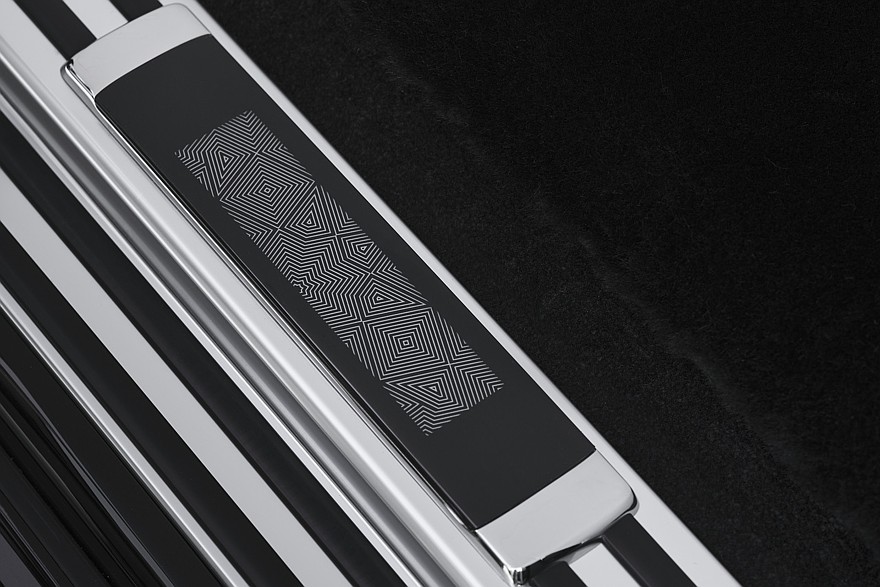 Ещё в списке особенностей внешности числится нижняя часть кузова, окрашенная в чёрный оттенок Diamond Black, которая сочетается с верхними поверхностями, оформленными в светло-серебристом цвете Silver. Решётка радиатора выполнена из затемнённого хрома и имеет подсветку, кроме того, подсветить в этом автомобиле можно и фирменную статуэтку «Дух экстаза», которая располагается на кромке капота. Ещё этому автомобилю достались оригинальные 22-дюймовые колёсные диски.