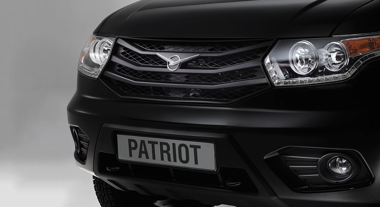 Обновлённый "Патриот" получил новую решётку радиатора, оптику с интегрированными дневными ходовыми огнями (в топовых комплектациях они светодиодные), складывающиеся зеркала заднего вида с повторителями указателя поворота, увеличенный противотуманные фары.