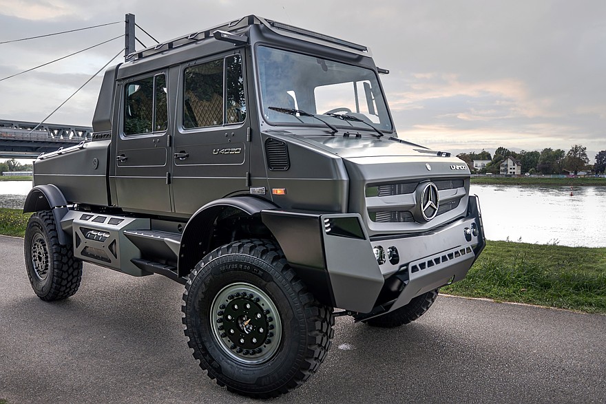 Юбилейный Unimog U 4023, разработанный совместно с компанией Hellgeth Engineering (это постоянный партнёр Mercedes-Benz Special Trucks), представлен заранее, потому что в следующем году он будет передан неназванному клиенту, который в свою очередь устроит этому уникальному Унимогу всесторонние испытания. По их результатам может быть принято решение о мелкосерийном выпуске таких вот роскошных Унимогов.