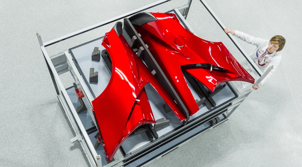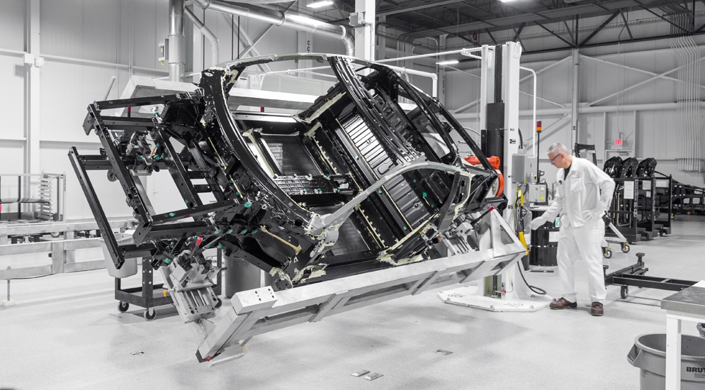 Уникальным элементом является также специальный механизм, функционирующий по принципу вертела. Благодаря новой технологии раму можно поворачивать на 360 градусов для удобства работы техников. Еще на заводе применяется новый способ литья узлов, выступающих в качестве точек крепления и элементов структуры кузова, смягчающих последствия столкновений.