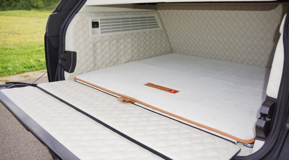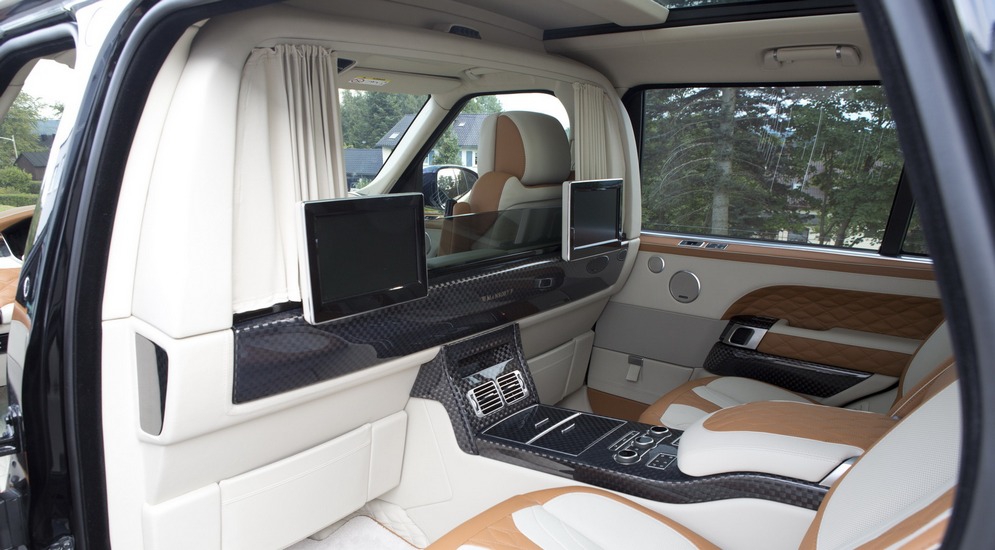 Но все эти изменения – лишь мишура в сравнении с новым ультра-роскошным интерьером «рейнджа». Использованные материалы на вид и ощупь дают понять: тут всё по высшему разряду. Цветовая комбинация обыграна при помощи светло-бежевого и рыжего оттенков и щедро сдобрена карбоном. Помимо этого, за передними сиденьями появилась массивная перегородка, позволяющая изолировать седоков второго ряда при помощи электрически сдвигаемых шторок. Шиком не обделено даже багажное отделение – тут встречает стёганая кожа и белоснежный ковёр из натурального ворса.
