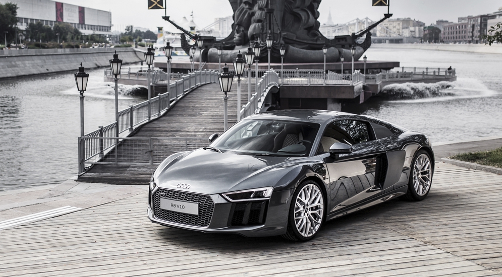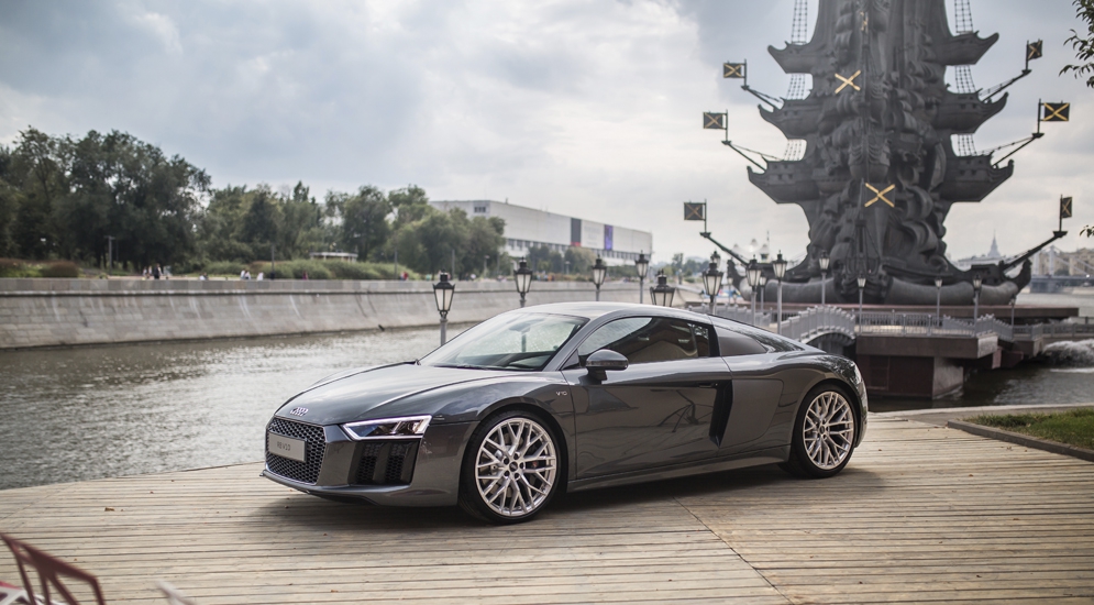 Audi R8 V10 plus, оснащенный 610-сильным V10 и способный развить впечатляющие 330 километров в час, был представлен руководителем Audi в России Ахимом Заурером. Могучий крутящий момент 560 Нм передается на все четыре колеса через семиступенчатую трансмиссию и позволяет достичь первой "сотни" за 3,2 секунды, а за 200 километров в час перевалить всего за 9,9 секунды. Для экономии топлива часть цилиндров мотора может отключаться. Уверенное торможение обеспечивают керамические тормозные диски