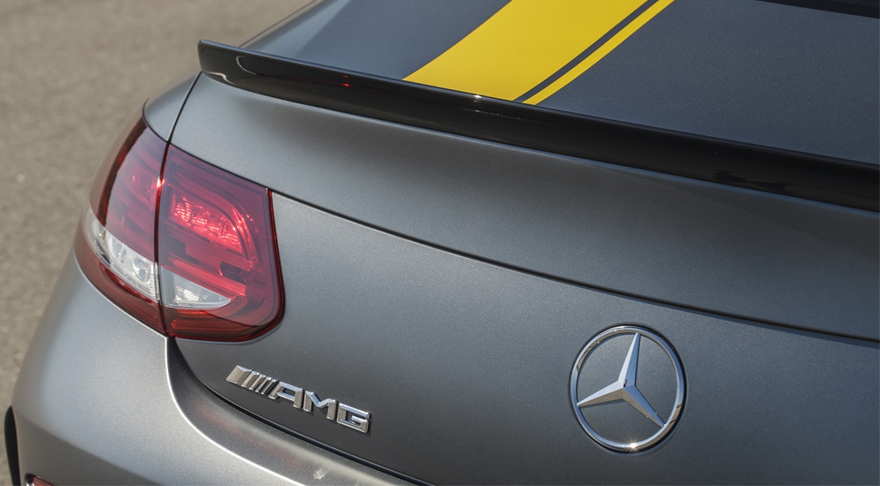 Mercedes-AMG C 63 Coupé Edition 1 выглядит несколько сдержаннее за счёт того, что спортивного вида полосы на кузове окрашены матовой серой краской, а спортивные шины и мощные керамические тормоза предлагаются в качестве опции.
