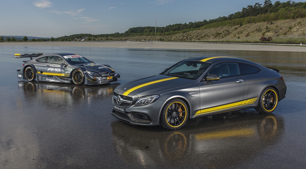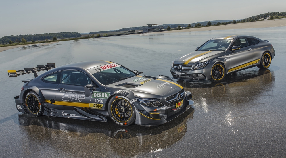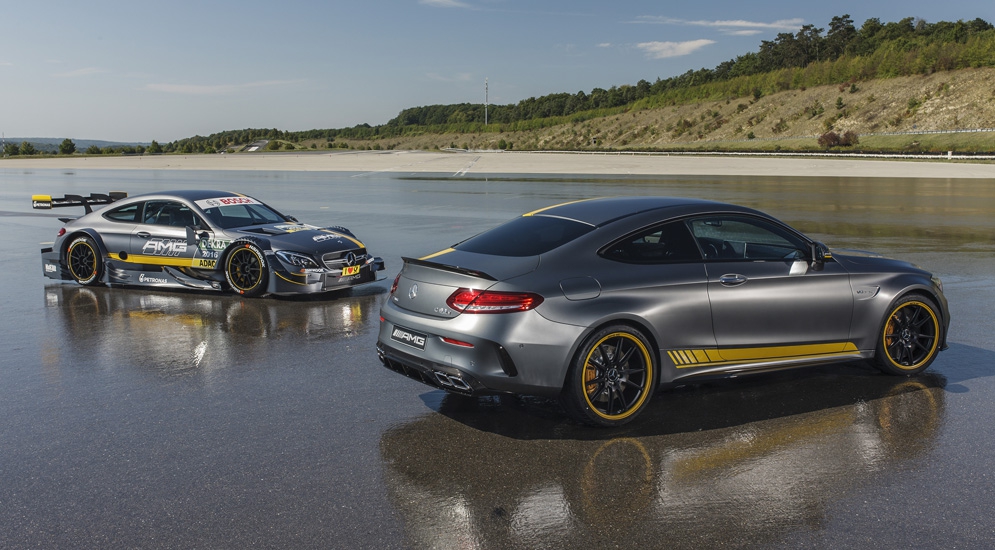 На фото: Mercedes-AMG C 63 Coupé Edition 1 и его гоночная "ипостась"