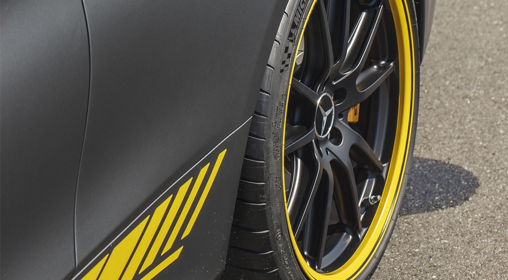 В исполнении Edition 1 можно будет купить как "базовый" Mercedes-AMG C 63 Coupé, так и более мощную версию S. С точки зрения дизайна более интересно выглядит именно "Эска", которая поставляется в том же "графитовом" цвете Magno Selenite Grey с жёлтыми акцентами, что и "боевой" болид, подготовленный к грядущему сезону. Дополняют картину эксклюзивные экстра-лёгкие колёсные диски (диаметром 19 и 20 дюймов спереди и сзади соответственно) с "липучими" шинами, за которыми скрываются керамические тормоза.