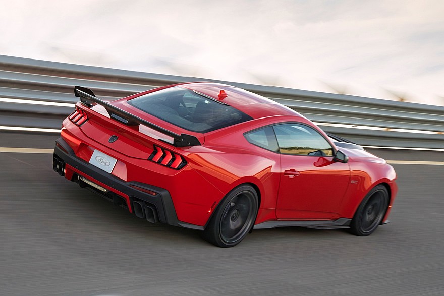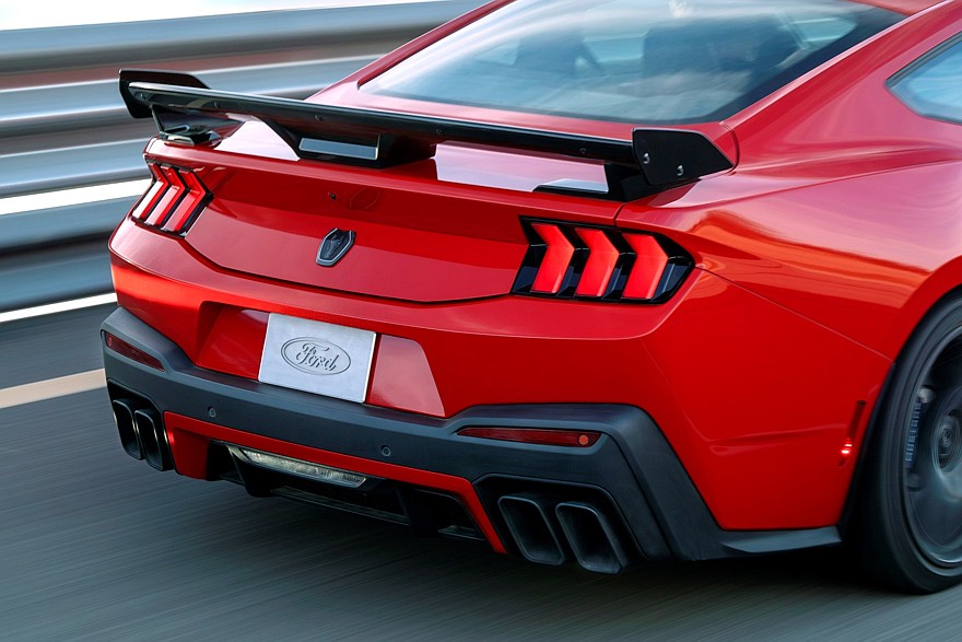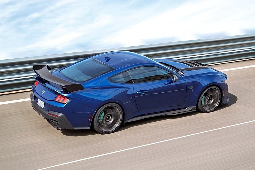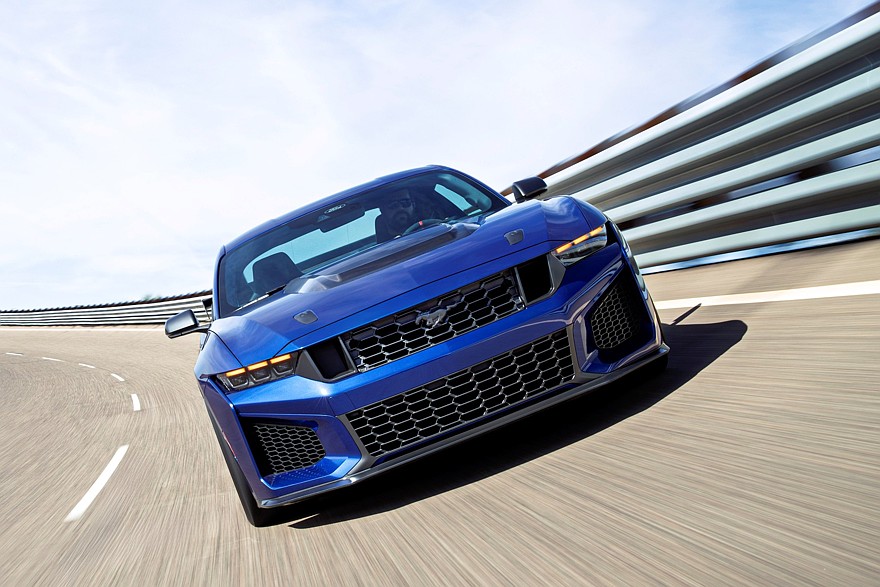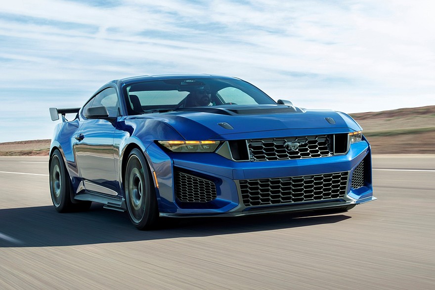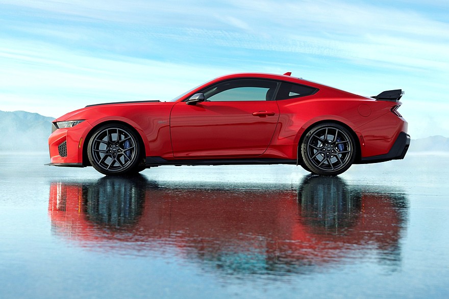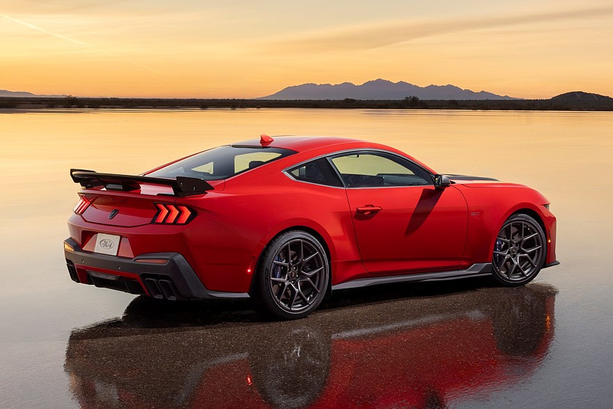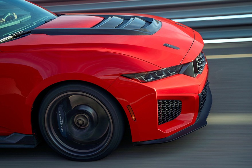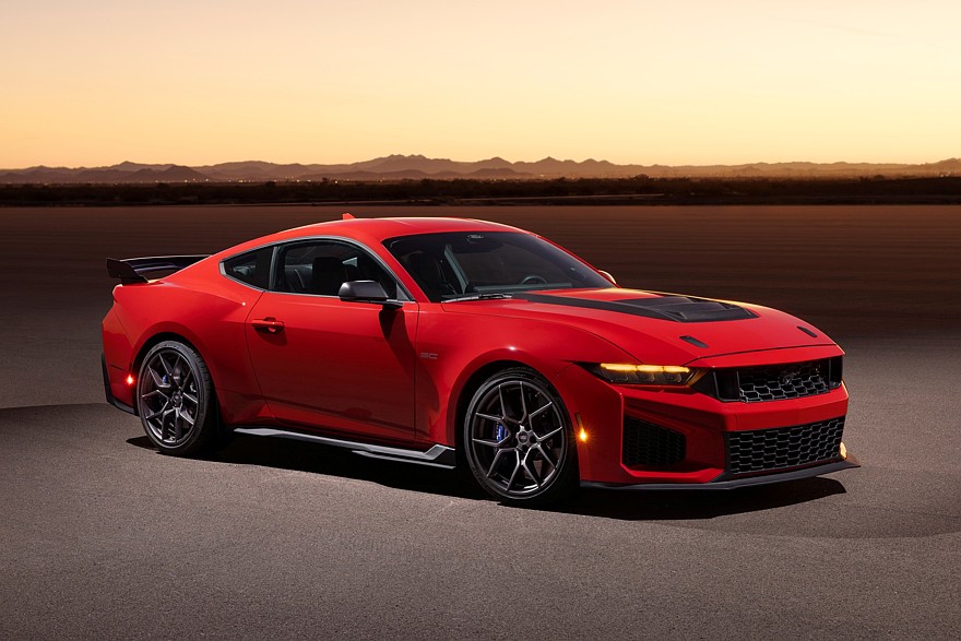 Ford Mustang GTD — это, напомним, самый крутой из существующих заводских Мустангов, у него собственное уникальное шасси, разработанное в партнёрстве с канадской фирмой Multimatic, компоновка типа Transaxle (мотор спереди, а коробка передач отнесена к задним колёсам) и сильно перекроенный по сравнению с другими Мустангами кузов. Короче говоря, Mustang GTD — это почти суперкар, и цена у него почти как у суперкара — от 325 000 долларов. До появления GTD самой крутой версией Мустанга была Shelby GT500, но в нынешнем седьмом поколении Мустанга заводских версий с именем Shelby нет, и, судя по всему, уже не будет — это было понятно ещё в начале прошлого года, когда компания Shelby American представила собственный новый Shelby GT350 на базе Мустанга, а Ford не имеет к этой машине никакого отношения. Что касается топового Shelby GT500, то сегодня стало окончательно ясно, что ему на смену пришёл Mustang Dark Horse SC.
