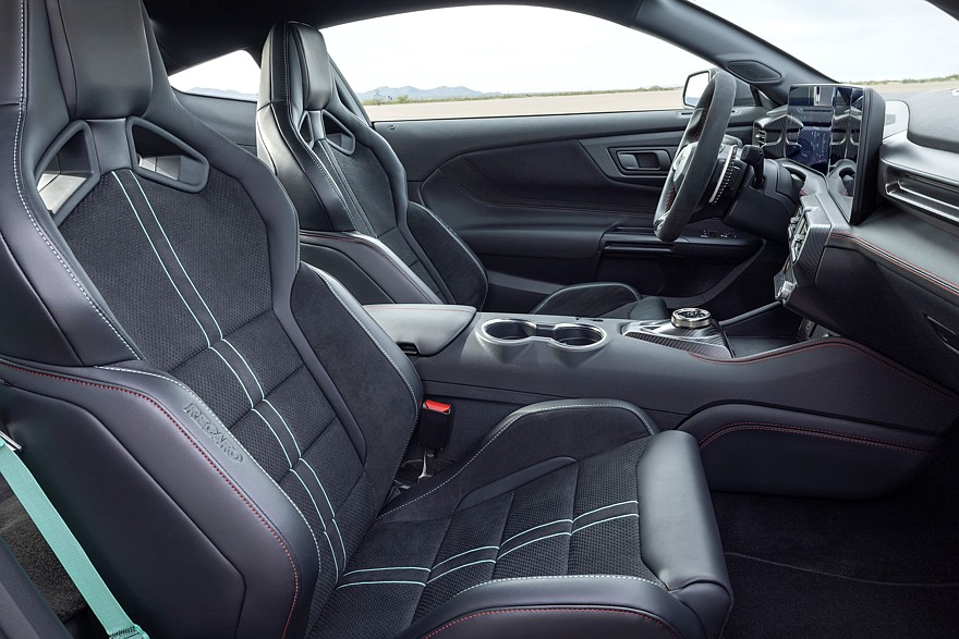 Силовой агрегат у Ford Mustang Dark Horse SC, в сущности, такой же, как у последнего заводского Shelby GT500, то есть 5,2-литровый V8 Predator в паре 7-ступенчатым «роботом» Tremec с двумя сцеплениями, но отдача двигателя пока не раскрыта. Для ориентира скажем, что на последнем Shelby GT500 этот двигатель в стоке выдаёт 771 л.с., на Ford Mustang GTD — 826 л.с. Полагаем, что у Mustang Dark Horse SC мощность будет где-то посередине, то есть на уровне 800 «лошадей».