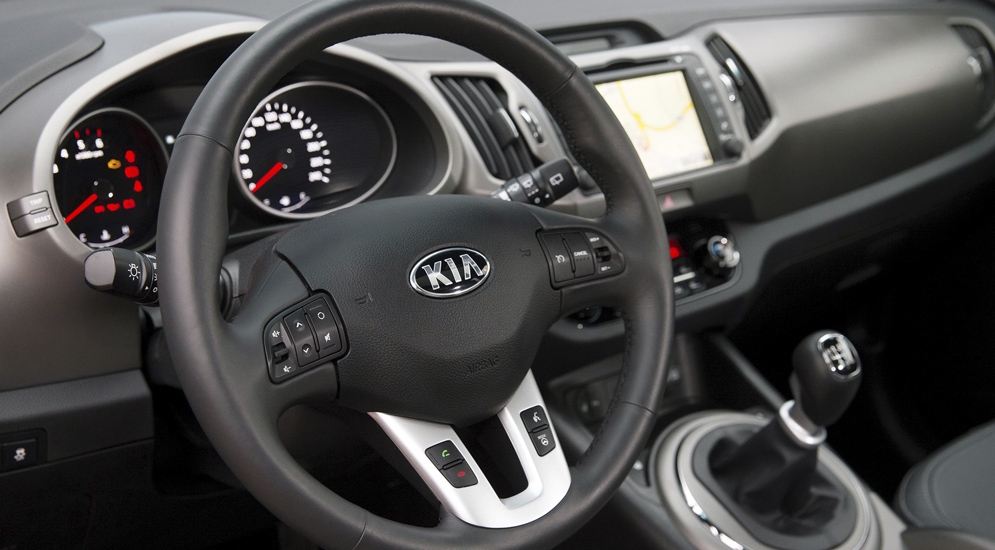 На скане изображен салон богато оснащенной версии, которая получит мультифункциональный руль точь-в-точь как у нового седана Optima. На нем находятся клавиши управления мультимедийной системой UVO, круиз-контроль и телефон. Семидюймовый мультимедийный экран обрамляют воздуховоды системы кондиционирования, при этом со стороны пассажира от приборной панели к центральному тоннелю протянулся поручень.