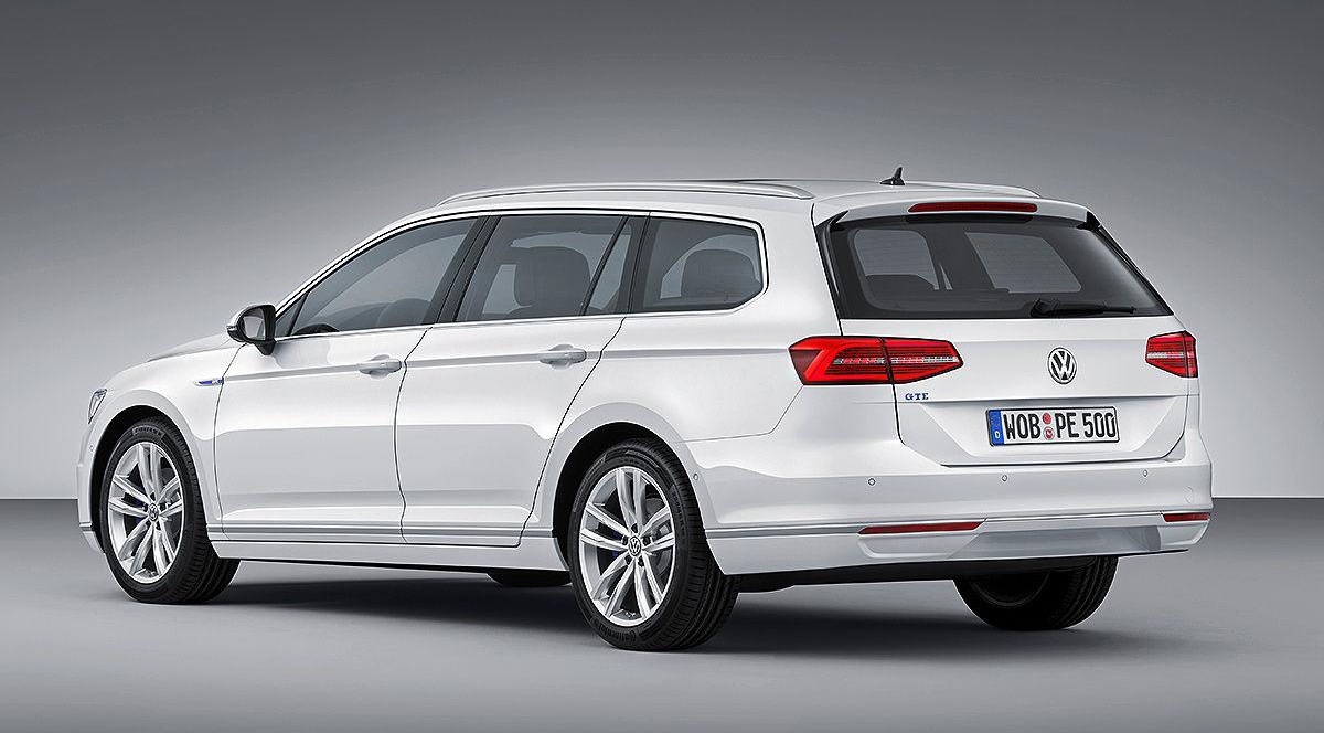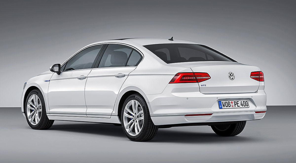 VW Passat GTE построены на базе восьмого поколения модели и отличаются голубыми акцентами над решеткой радиатора и на передних крыльях, новым передним бампером с C-образными светодиодными "противотуманками" и колесами большего диаметра.