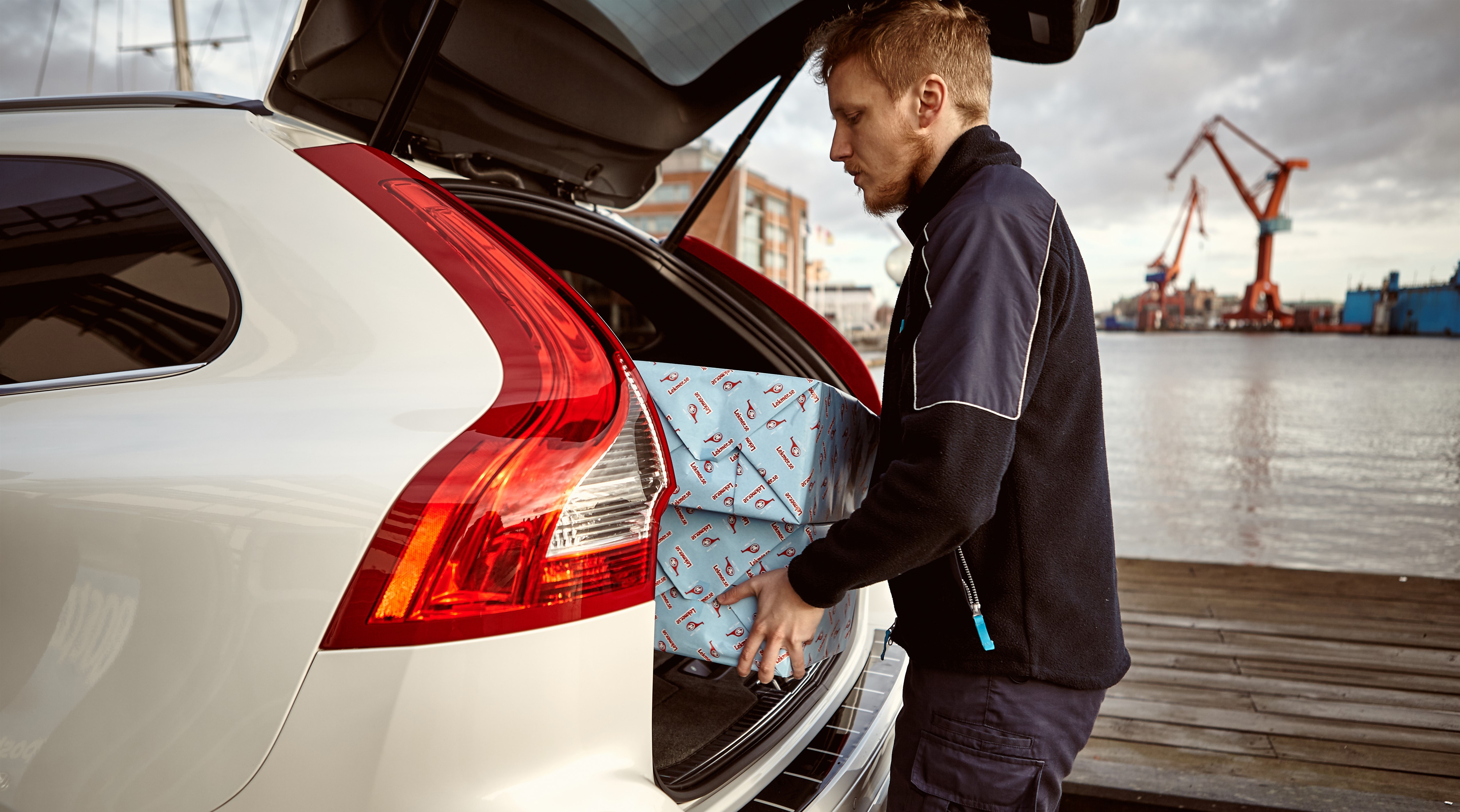 Шведский производитель запустил первую в мире коммерческую доставку товаров прямо в автомобиль. Таким образом Volvo пытается помочь своим клиентам избежать предпраздничной суматохи, когда огромное количество автомобилей забивают до отказа парковки возле крупных торговых центров. Идею помогли воплотить партнеры фирмы в лице крупнейших магазинов Скандинавии.
