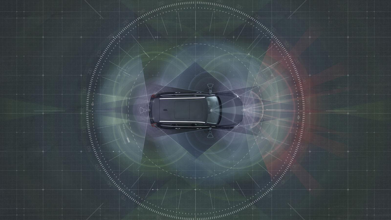 Система автономного управления автомобиля работает на базе данных, получаемых с нескольких радаров, камер и лазерных сканеров, которые обеспечивают обзор ситуации вокруг автомобиля на все 360 градусов.