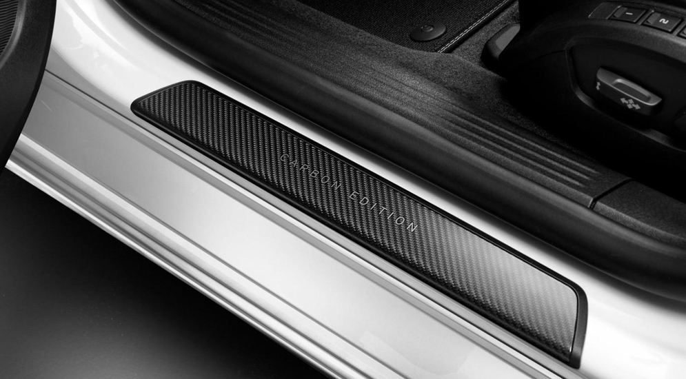 Перемен в интерьере немного, и их уместнее назвать акцентами: на порогах появились карбоновые накладки, в то время как ярко-красные ремни безопасности подчеркивают спортивный характер модели.
