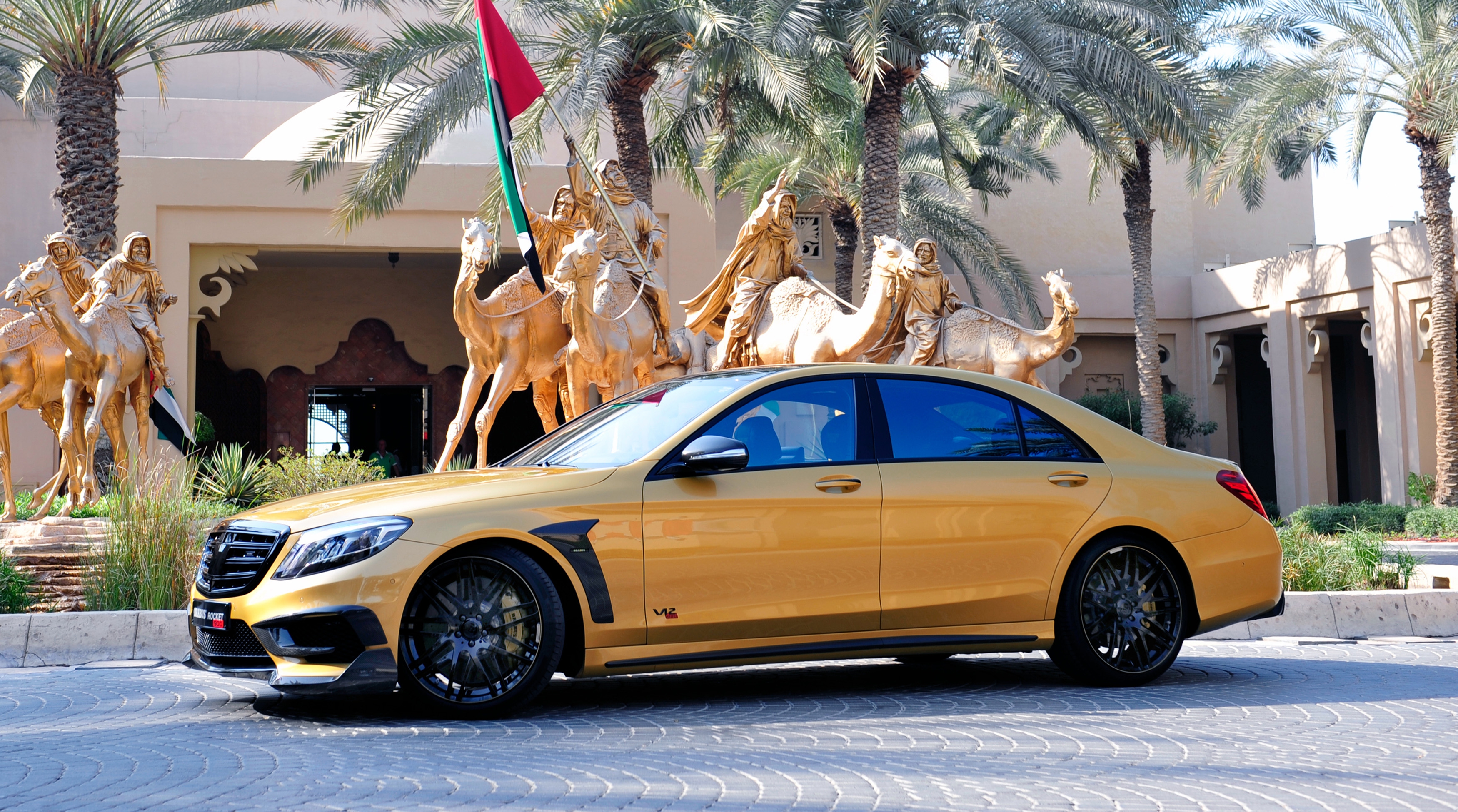 Mercedes-Benz S 65 AMG выкрасили в цвет "Пустынное золото", контрастными элементами которому служат карбоновые аэродинамические элементы и часть "оперения" автомобиля. Rocket 900 Desert Gold Edition оснастили 21-дюймовыми чёрно-глянцевыми дисками с еле заметным жёлтым ободом.