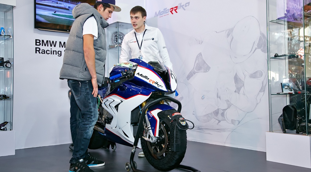 В этом отношении более демократичная «Мотозима» оказалась гораздо более интересной. Свои стенды открыли «Байкленд», представлявшая технику КТМ; рядом, не давая расслабиться ребятам из Маттигхоффена, развернулась BMW. Из угла на вечных конкурентов поглядывали хитрым прищуром фары Ducati, а центр зала техники заняла компания «Гранмото» с ее британскими Triumph и утонченными MV Agusta. Нашлось место и экзотичным трайкам: Rewaco, Boom и «Трайкер». Свои снегоходы и квадроциклы, не стесняясь соседства с асфальтовыми аппаратами, выставил московский дилер BRP, компания «Техноэксперт». Распахнули двери стенды мотосервисов, мотообъединений, школ и клубов. Словом, о таком количестве действительно интересной техники унылому «Мотопарку» можно только мечтать.