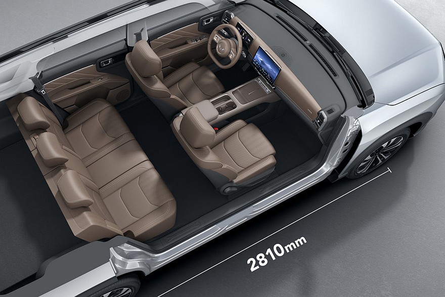 Кроссовер доступен с пяти- или семиместным салоном. Китайцы пишут, что объем багажника двухрядной версии составляет 763 литра, со сложенными спинками задних кресел – 1945 литров. Внутри – лаконичная передняя панель с раздельными экранами приборки и мультимедийной системы. Чисто бензиновому кроссоверу достался привычный рычаг коробки, у электрифицированных версий – подрулевой рычажок. Список оборудования богатым не назовешь: в дорогих комплектациях есть беспроводная зарядка для смартфона, камера заднего вида и круиз-контроль.