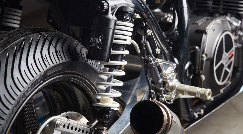 Телескопическая вилка и пара задних амортизаторов собраны компаниями K-Tech Suspension и Novatech. Полностью титановый выпуск от японской компании Asahina Racing спроектирован таким образом, чтобы установить его можно было не только на эксклюзивный XJR1300 Yard Built "Big Bad Wolf", но и стандартный XJR1300.