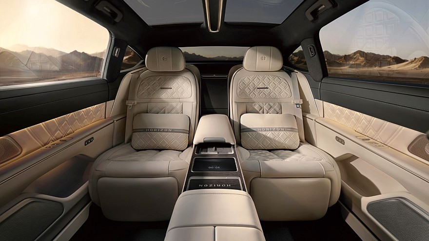 Мы бы не удивились, если бы в серии Horizon Edition появилась версия, посвящённая озеру Байкал, но пока такой нет, а есть две вышеозначенные версии с двухцветной окраской. Краска на эти машины наносится вручную в несколько слоёв, для чего требуется более 100 часов работы. Комплектация седанов из серии Horizon Edition самая богатая, она дополнена особо изысканной отделкой салона тиснёной кожей и кучей надписей Horizon, в том числе на порогах и на съёмных кожаных подушках.