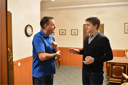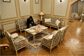 Обычная комната метров 16, резная мебель с позолотой — ощущение роскоши, но при этом скромность. Сорочка Brioni и простая вешалка из заурядного гипермаркета. Обладатель почетного звания «Лучший руководитель автомобильной отрасли в Европе» осознает свой статус, но не кичится этим. С ним комфортно в общении.