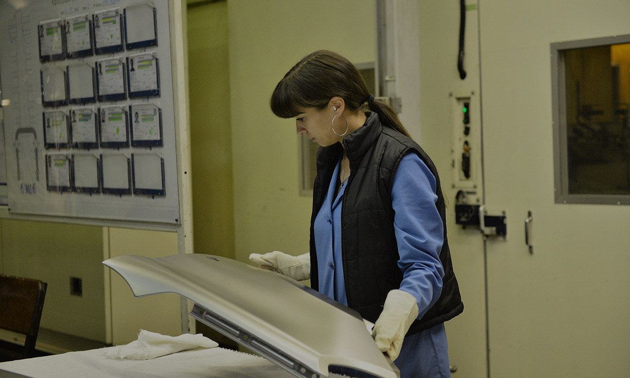 70-ton crimping machine is operated by 12 people, including 2 operators and 10 stackers who monitor quality of the details. I get numb when I watch how robots, like those from “Transformer” film, are moving the plastic mat fins of wings with unbelievable accuracy.
