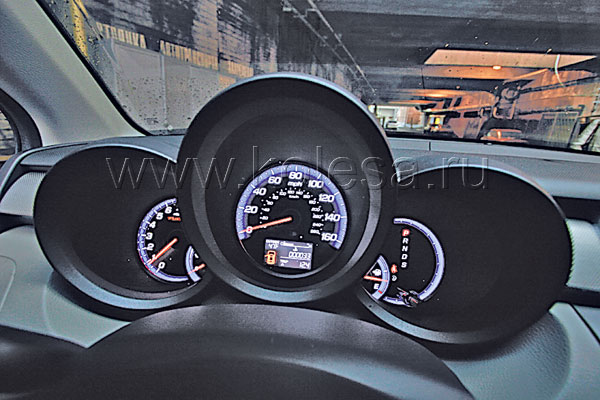 Зато в интерьере полуспортивный «хондовский» стиль наилучшим образом сочетается с функциональностью бизнес-седанов. Мне здесь все по душе. В руках удобно лежит черный руль с серебряными вставками и многочисленными кнопками. С баранки управляем всем: круиз-контролем, магнитолой и телефоном, – а в области хвата он еще имеет утолщения. Между его сердцевиной и верхней частью обода хорошо просматриваются утопленные приборы-колодцы, отливающие фиолетово-синим светом. Напоминает новый Civic. В мягком водительском сиденье можно очень удобно устроиться: отделанное светлой кожей кресло снабжено широким диапазоном электрорегулировок, поясничной и боковой поддержками. Пассажиру придется довольствоваться механическими регулировками, причем всего в четырех положениях.