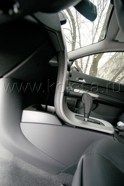 Но подвеска не так скоро заставила обратить на себя внимание: работает – и ладно. А вот псевдоспортивная баранка удивила неплохим внятным усилием, ослабевающим со снижением скорости. На высоких скоростях у руля остается пара градусов малочувствительной зоны, и автомобиль не рыскает по сторонам на малейшей его поворот. А в вираже, наоборот, руль становится максимально чутким к водительским действиям. Зато чуткостью не отличается «ватная» педаль газа, затрудняющая управление двигателем.