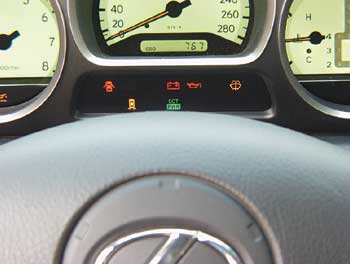 На стоянке позади руля царит мрак, но стоит повернуть ключ зажигания – и циферблаты загораются нежно-зеленым светом, напоминая своим видом осциллографы. Очень оригинально и симпатично! Правда, не обошлось и без промахов: так, правый из "колодцев" переполнен информацией – в нем "плещутся" стрелки указателей уровня топлива и температуры охлаждающей жидкости, а также индикатор режимов КПП. А сердцевина руля напрочь перекрывает окно сигнальных ламп, расположенное в самом низу приборной панели.