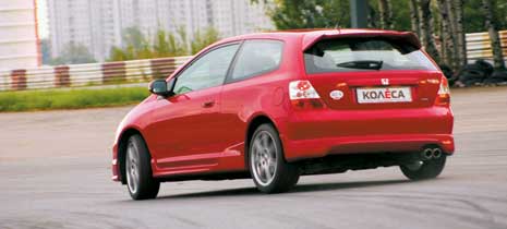 Type-R срывается с места с легкостью, готовой стать откровением для любого, кто знаком со сложным характером высокофорсированных многоклапанных моторов. "Проглотив" стартовую прямую за несколько мгновений, Civic с бешеной интенсивностью оттормаживается. Оттормаживается, чтобы намертво вцепиться в первый поворот. Спустя мгновение машина уже прочерчивает с прецизиозностью лекала крутую дугу и вновь оказывается на прямике. Три восхитительных – коротких, образцово-четких – переключения, и на пути к 200-километровой отметке спидометра оказывается "автобусная остановка". Но входящие в нее две "переставки" преодолеваются без видимых проблем благодаря ювелирной точности работы рулевого механизма. Очередная дуга, очередная "остановка" и тут же – жесткая "шпилька". В ситуации, когда рулем приходится работать больше, чем хотелось бы, на помощь приходит обратная связь, достоверности которой не всегда хватает в более спокойных поворотах. Ошибка с передачей на выходе – не беда: фантастически эластичный мотор вытянет и на третьей, и на четвертой. И даже на пятой – без всякий вибраций, детонаций и прочих "напрягов".