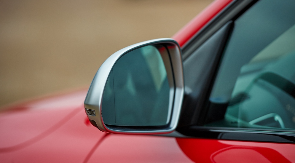 Далее глаз примечает матовые 20-дюймовые диски Rotor, а по-народному, "топоры", на "изоленте" 35-го профиля. Еще секунда — и замечаешь, что воздухозаборники в бампере большие и явно не бутафорские... И уже восприятие меняется. Это — не просто очередной кроссовер. Это — яркая штучка.