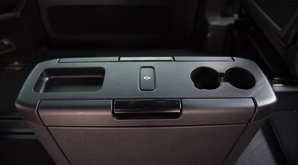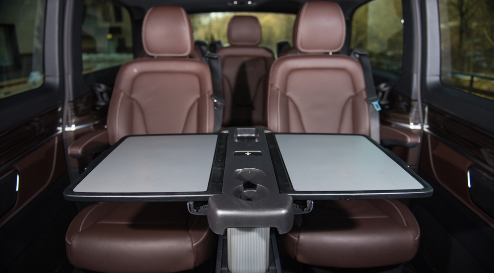 С возможностями трансформаций здесь все весьма стандартно. Кресла второго ряда имеют продольную регулировку и могут быть развернуты «задом наперед», образуя «купе». Имеется и обычный для таких машин раздвижной столик. Вернее, в отличие от того же Multivan, два персональных столика, разделенные средней зоной с подстаканниками, что не всегда удобно при коллективной работе или даже перекусе. Задний ряд имеет продольную регулировку и некоторую свободу в наклоне спинок.