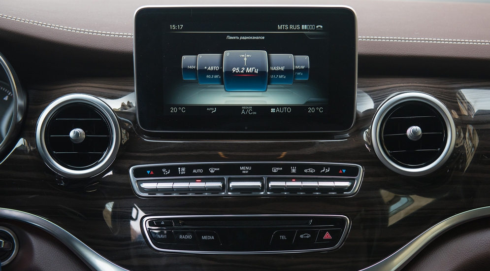 Производители очень любят ставить в пресс-парки топовые версии своих автомобилей. Показать во всей красе последние достижения техники, технологии и дизайна, произвести впечатление на нас, журналистов. На мой взгляд, было бы честнее в довесок к самой дорогой версии иметь в наличии и самую простую, ведь зачастую именно базовые версии пользуются наибольшим спросом, да и сравнивать конкурентов в таком формате – честнее. Тем не менее, у нас в руках самый мощный V-класс в варианте V250d Avantgarde. И пусть вас не смущают цифры – здесь четырехцилиндровый мотор рабочим объемом 2 143 см³, в самой «верхней» модификации. Здесь он выдает 190 л. с. и 440 Нм. На более простых вариантах V-класса с индексами «200 СDI» и «220 CDI» стоит тот же самый мотор, но несколько «задушенный»: до 136 и 163 л. с. соответственно. Кстати, помимо самой высокой мощности, «250-ка» также оборудована системой BlueTec – впрыска мочевины, которая повышает экологический класс мотора до Евро-6. Есть в арсенале V-класса и бензиновый мотор, однако мы оставим его за скобками.