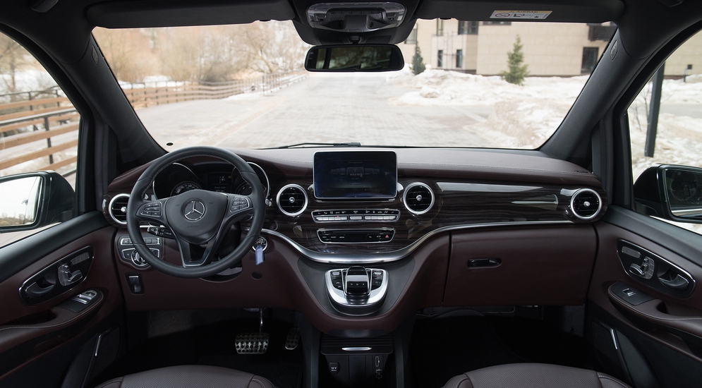 Даже весьма внушительные 190 лошадиных сил не придают V250 какого-то агрессивного ускорения. Вернее, скажу иначе – даже максимально интенсивный разгон, а он составляет 12,1 секунды до 100 км/ч, не воспринимается, как спринтерский старт. Mercedes умеет прятать ощущение скорости и динамики где-то между колесами и внутренней обшивкой салона. Стоит ли говорить о том, что рабочее место водителя здесь неотличимо от любого другого современного Mercedes как по расположению органов управления, так и по их качеству, количеству и функциональности? Разве что высокое кресло с откидным подлокотником и взгляд поверх крыш «леговушек» не дает забыть о том, что ты за рулем микроавтобуса, а не представительского седана.