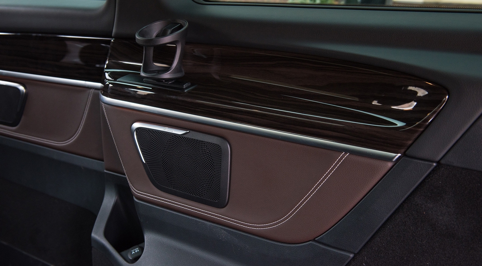 Вот только один вопрос меня терзает: коли у нас «большой представительский автомобиль», то почему в салоне не четыре отдельных кресла, а два кресла и трехместная лавка в третьем ряду? Я бы понял такую компоновку в более простых вариантах, но ведь наверняка машину в таком исполнении с деревом и кожей вряд ли будут брать в качестве развозного автобуса для офиса. А машины персонального характера или даже разъездные для высшего «командного состава» в подобной компоновке не нуждаются. Вряд ли на этой лавке будут тесниться члены совета директоров.