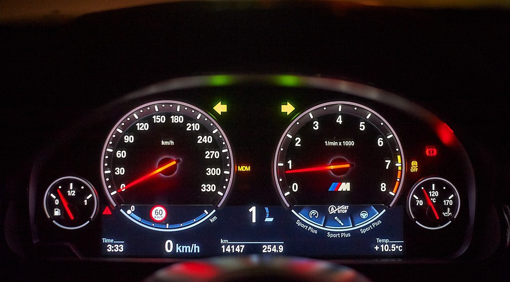 Небольшой экскурс в технику, чтобы вы понимали, с чем я имел дело. Мотор – бензиновый V8 объемом 4,4 литра. Мощность – 560 л.с., максимальный крутящий момент – 680 Нм, коробка передач – 7-ступенчатый робот. Привод – разумеется, задний. Разгон до «сотни» – 4,2 секунды. Максимальная скорость – 305 км/ч. В тестовой машине были установлены опциональные карбон-керамические тормоза, что позволило сэкономить на каждом колесе по 7 кг массы. Масса – 1950 кг. Объем бака – 80 литров, и заправлять его надо 98-м бензином, и делать это придется часто – при активной езде (а иначе этот монстр не позволяет…) расход топлива держится на отметке в 27 л/100 км. На трассе, конечно, можно его снизить до 12-14 литров, но и это – задача для совсем уж хладнокровных персон. Я пытался ездить на M6 спокойно. Это пытка.