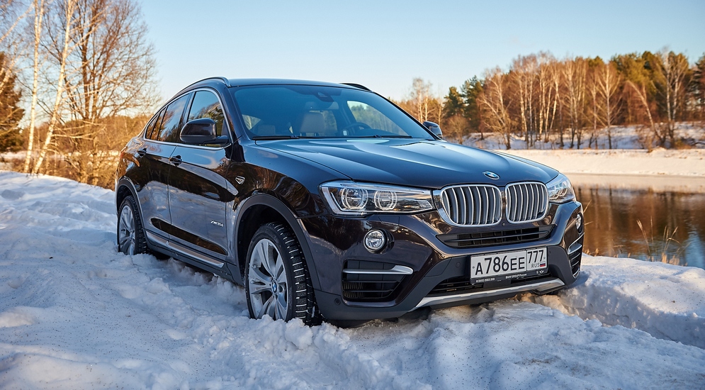 Подвеска же более чем адекватна. Скажу больше: она необыкновенно мягка для BMW. На высокой скорости X4 покачивается, будто не по асфальту едет, а по водяному матрасу. Минусы — неожиданные метания кузова при нагрузках в повороте. Плюсы — даже наши дороги X4 "перемалывает" с легкостью. Только упаси вас инжектор съезжать с хорошего, твердого покрытия — X4 на это не рассчитан. Я в этом убедился, пока пытался подъехать к краю овражка ради эффектного кадра "в рассвете". BMW повис на "брюхе" в абсолютно безобидном сугробе.