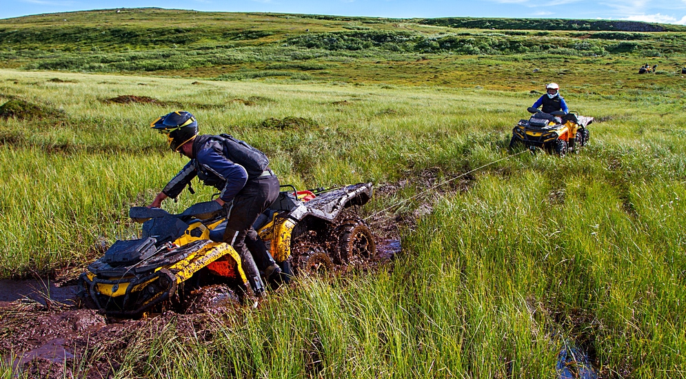 Отсюда становится совершенно ясно, что шестиколесник найдет пристанище только в гаражах абсолютно, бесповоротно, наглухо пробитых фанатов квадроциклов в целом и марки Can-Am в частности. Так что рассматривать мы его будем исключительно с точки зрения оффроудных путешествий. Никакой работы, прикидок к потребностям егерей и охоников-рыболовов. Для первых есть "Буханки", для вторых – "Патриоты" и лифтанутые "Крузаки".