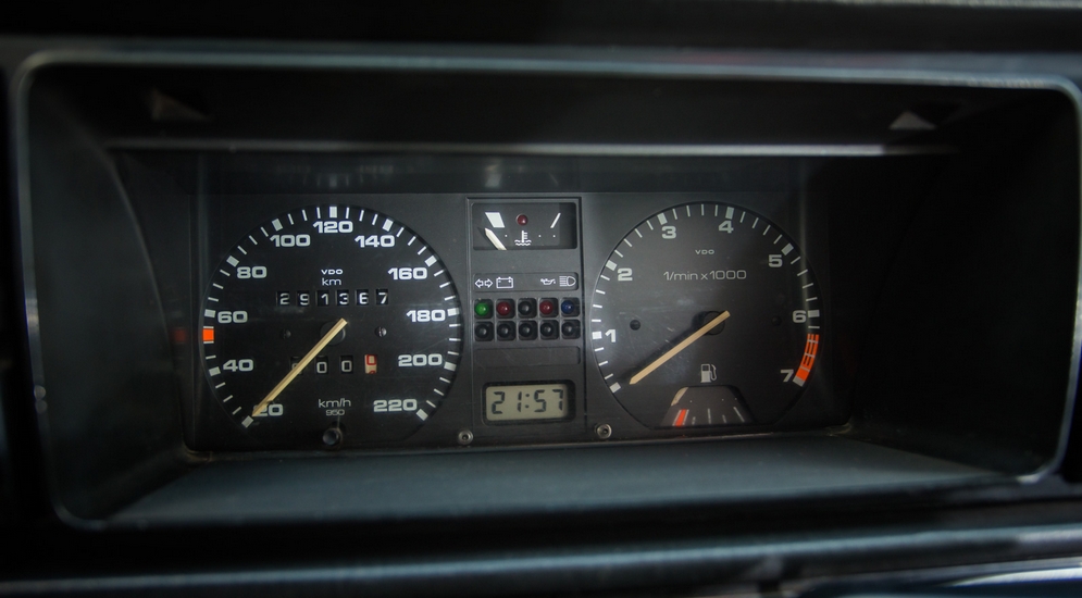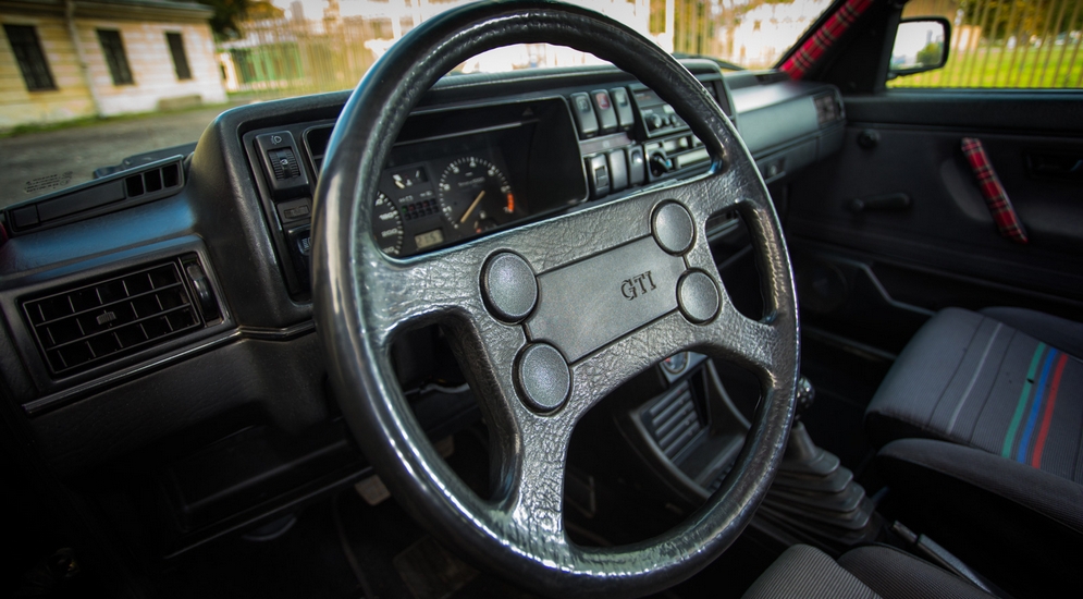 Дизайн интерьера – восьмидесятые как они есть. Передняя панель согласно тогдашней моде аккуратно, по линейке, вырублена топором и допилена лобзиком. Пластик неожиданно мягок, хотя на вид этого не скажешь. Это как раз одна из особенностей комплектации GT. В других Golf владельцев обычно встречал жесткий, недорогой материал.