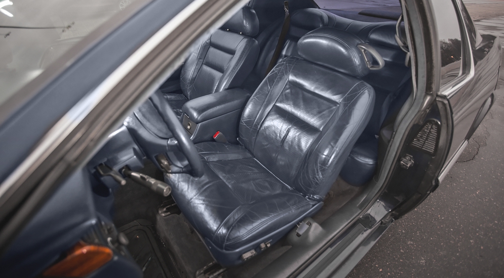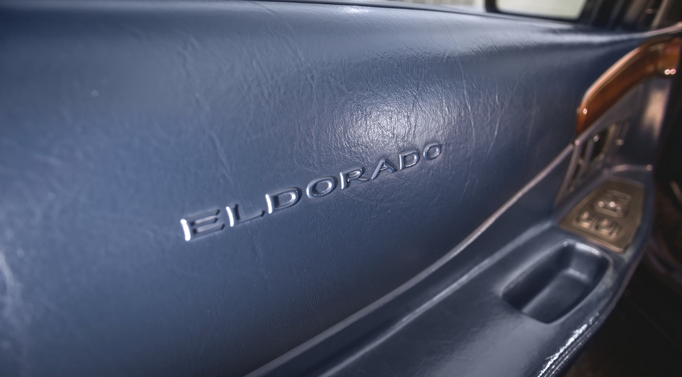 Американцы девяностых годов часто эффектны снаружи, но обескураживающе убоги внутри, причем вне зависимости от ценовой категории. Грешил этим и Cadillac, но Eldorado повезло. За отделку интерьера последнему из серийных personal luxury с фамильным гербом Сира Антуана де ля Мот Кадийяка на решетке радиатора краснеть не придется. Никакого унылого серого винила, салон решен в единой цветовой гамме с кузовом. Общую синюю идиллию высококачественной кожи и алькантары нарушает лишь разбросанная тут и там общекорпоративная серая фурнитура. Дерева в отделке много, но порог, за которым начинается кричащее дурновкусие, не превышен.