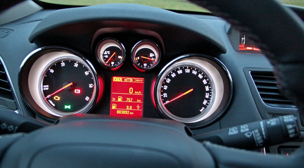 Самое интересное в этой машине – двигатель. Но я этого не знал, и поэтому прежде, чем тронуться в путь, потратил с полчаса на ознакомление с многочисленными опциями автомобиля. Быстрее никак – компактный малыш оснащен "не по-детски" богато. Кроме кожаного салона и передних сидений с регулируемой длиной подушки, вижу кнопки трехступенчатого подогрева сидений, а также подогрев руля. Есть еще система "Старт-стоп", круиз-контроль, парктроник, двухзонный климат-контроль и мультимедийная система с навигатором, Bluetooth, камерой заднего хода и акустикой Bose (в том числе сабвуфер!). Также в наличии система Opel Eye второго поколения, которая следит за дорожными знаками, предупреждает о покидании полосы и об опасном приближении к впередиидущим машинам. "Горный пакет" включает в себя систему помощи при старте в гору HSA и систему помощи при спуске с возвышенности HDC.
