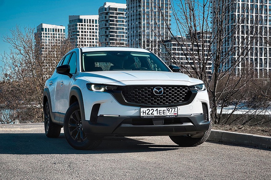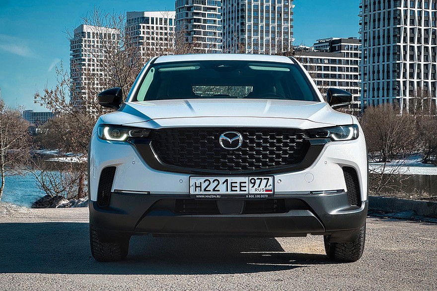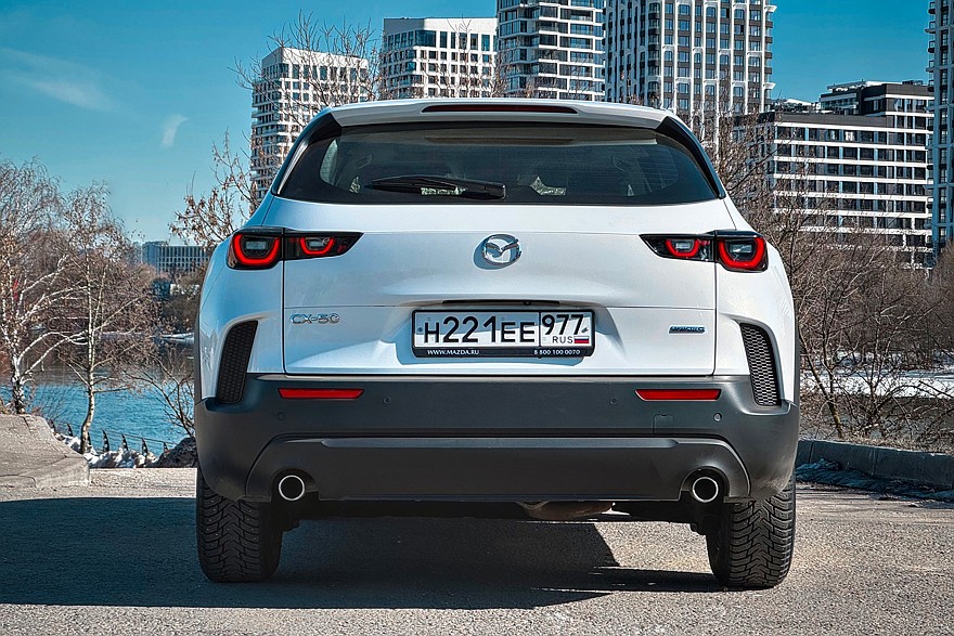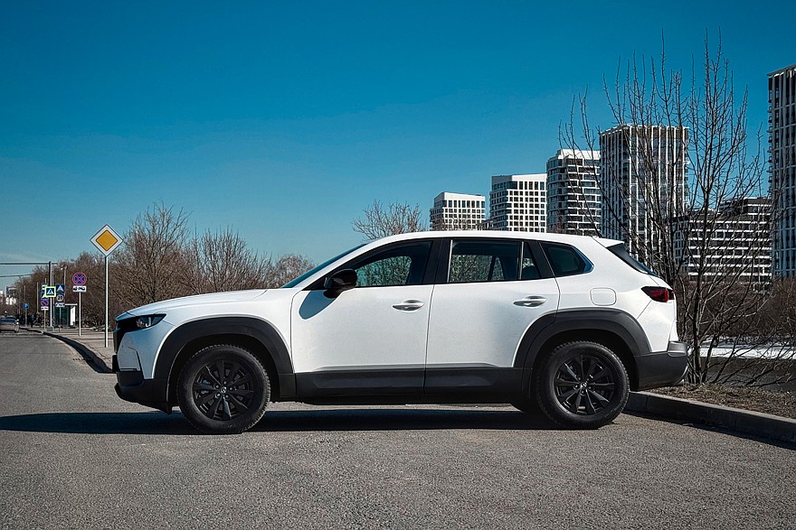 Конечно, Mazda CX-50 при желании можно было купить и раньше – у частных продавцов, которые привозили кроссовер параллельным импортом, но более знакомый и привычный CX-5 всё равно на порядок популярнее. Хотя внешне «пятидесятка» мне нравится больше – она чуть длиннее и шире, но при этом ниже «пятёрки», благодаря чему машина выгодно выделяется из потока безликих кроссоверов интересными пропорциями. Как человек в идеально сшитом костюме среди толпы в одинаковых трико с рынка. И, что важно, он не кричит о том, сколько этот костюм стоит.