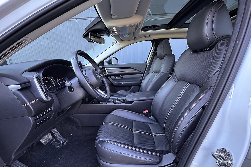 Mazda CX-50 предлагается в единственной комплектации Supreme за 4 720 000 рублей. Здесь есть кожаный салон, панорамная крыша, адаптивный круиз-контроль, бесключевой доступ, беспроводная зарядка, система кругового обзора и прочие вышеперечисленные штуки. С одной стороны – приятный дизайн, отличная эргономика и ощущение того самого настоящего автомобиля, где всё подчинено логике, а не трендам.