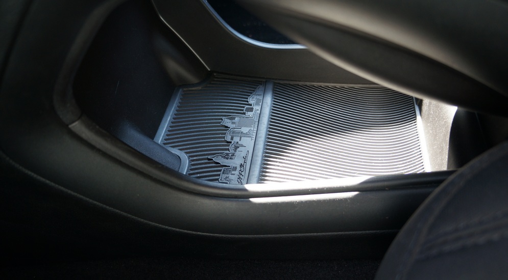 В-третьих, само оформление центральной консоли заставляло задерживать взгляд на деталях. Например, «парящая» нижняя часть консоли в духе Volvo S80, под которой располагалась полочка с выгравированным на резиновом коврике силуэтом города. Или шайба селектора АКПП, явно отсылающая к Ягуару. К сожалению, усилие на шайбе оказалось далеко не выверенным, момент включения нужной передачи можно было определить только по индикаторам. Кроме того, «шайбу» на ощупь сложно отличить от «крутилки» климат-контроля, располагающейся совсем рядом. Но зато необычно!..